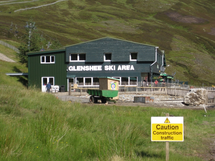 Cycling past Glenshee Ski Centre